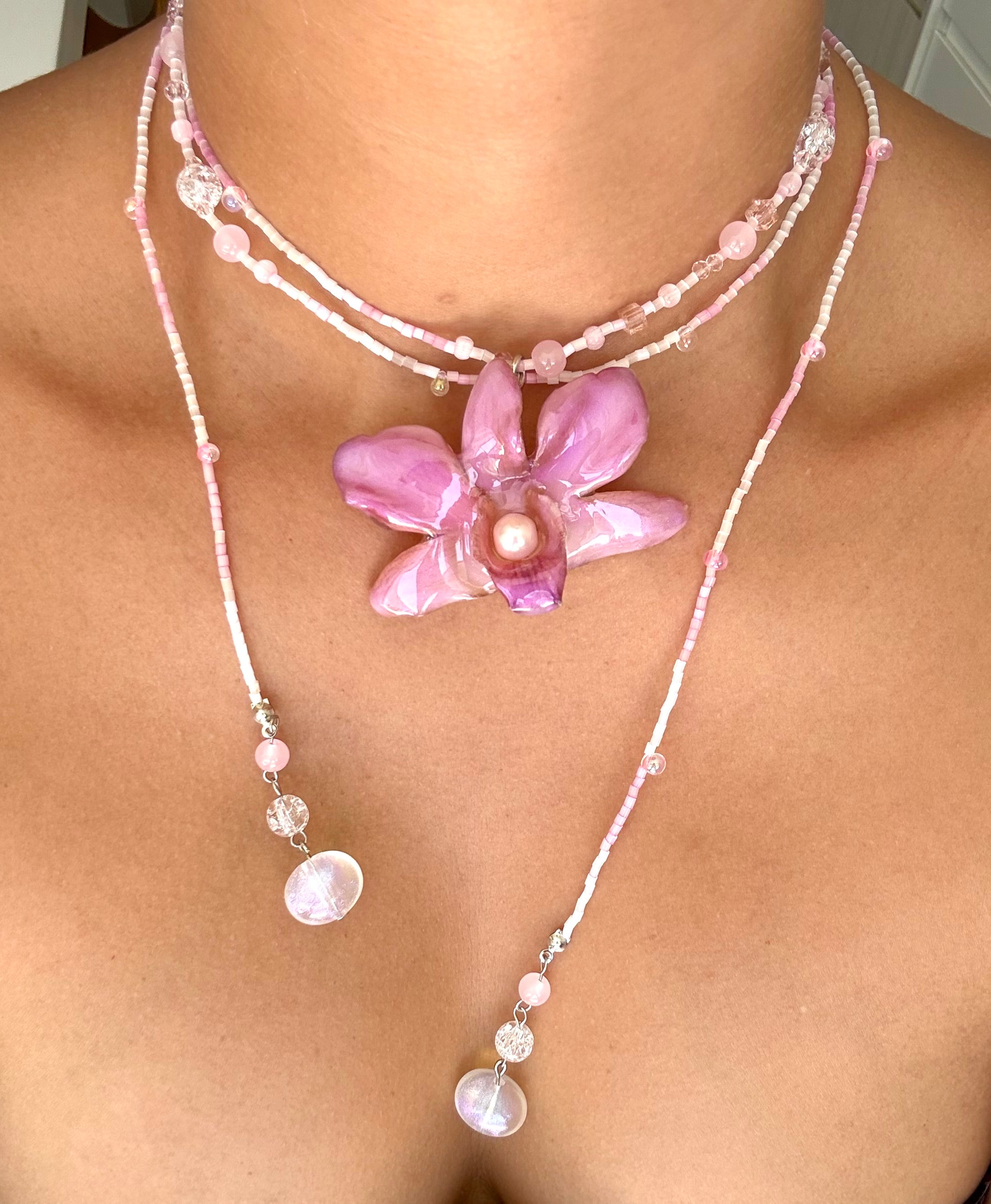 Handmade Blush Pink Orchid Necklace